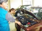 当店では車検専門店として、お客様にご満足頂けるよう、最新設備を導入しております。 最新の設備を使うことによって、カーディーラーと同じ56項目の法定点検をスピーディーに行い、 その分人件費を圧縮しております。