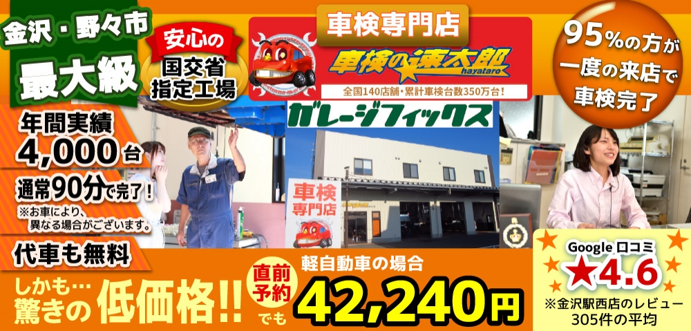 Copyright (C) ガレージフィックス運営の車検専門店「車検の速太郎」金沢駅西店,野々市店. All Rights Reserved.
